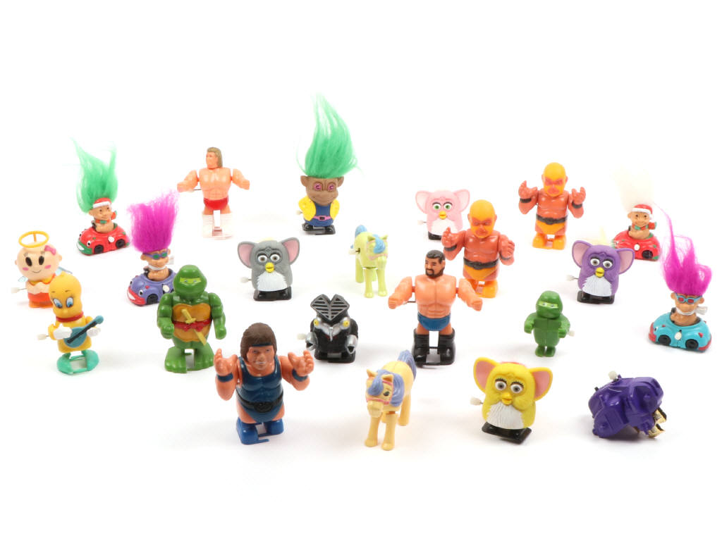 on y retrouve notamment : FURBY, CATCHEUR, TROLL & TORTUE NINJA - frottements plus ou moins importants sur l'ensemble des jouets - certains mécanismes poussifs - possibilité de petits éléments cassés ou manquants