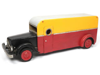 réalisation en bois - longueur : 65 cm - avec phares électriques, porte & portières ouvrantes - éléments non d'origine