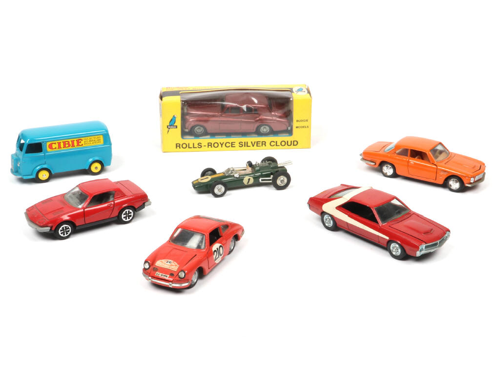 comprend notamment : AMC JAVELIN de STARSKY & HUTCH, ROLLS ROYCE SILVER CLOUD, PEUGEOT D3A 'CIBIE', LOTUS CLIMAX & PORSCHE 912 - on y retrouve les marques : BUDGIE MODELS (boite en état 'b'), PILEN, EDITIONS ATLAS, DINKY TOYS (GB), JOAL & POLITOYS