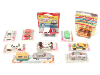 MAJORETTE (FRANCE) Ensemble de 10 véhicules & une remorque
