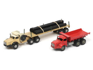 comprend les versions : semi-remorque (chargement non d'origine, base de galerie fêlée, prise d'air retouchée) & benne carrière (jantes légèrement fondues, système de basculement de benne terni)