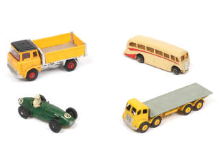 comprend les modèles : BEDFORD, CONNAUGHT & FODEN (RARE !) - on y retrouve les marques : DINKY TOYS, MORESTONE & CRESCENT TOYS - on y joint un LUXURY COACH de la marque MILTON (copie du moule DINKY TOYS, roues non d'origine - référence 281)