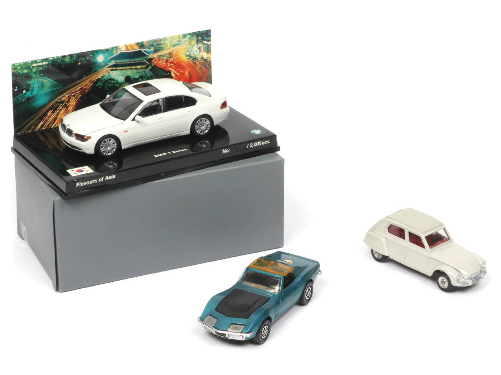 on y retrouve les marques : MINICHAMPS (en boîte état 'a', série limitée à 2005 exemplaires), CORGI TOYS (plaques minéralogiques retouchées) & DINKY TOYS FRANCE (MADE IN SPAIN)