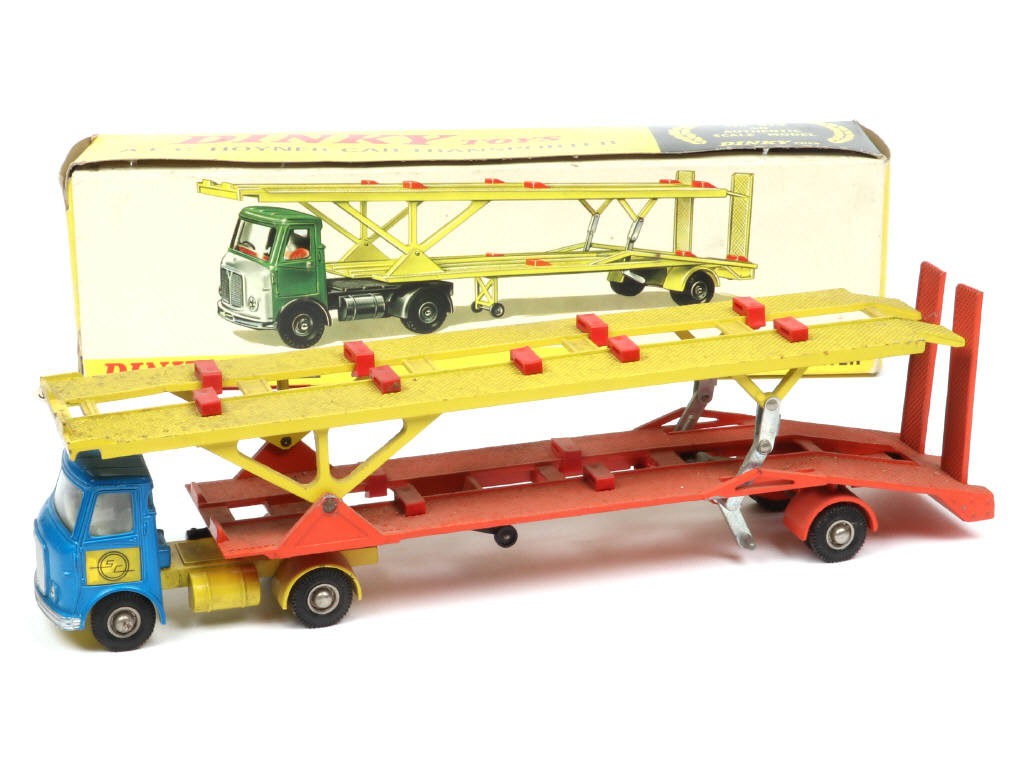 DINKY TOYS (GB) 974 A.E.C. Transporteur de voitures bleu métal, jaune & orange