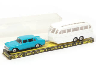 NOREV (FRANCE) 99 LANCIA FLAMINIA avec caravane HENON bleu turquoise & blanc