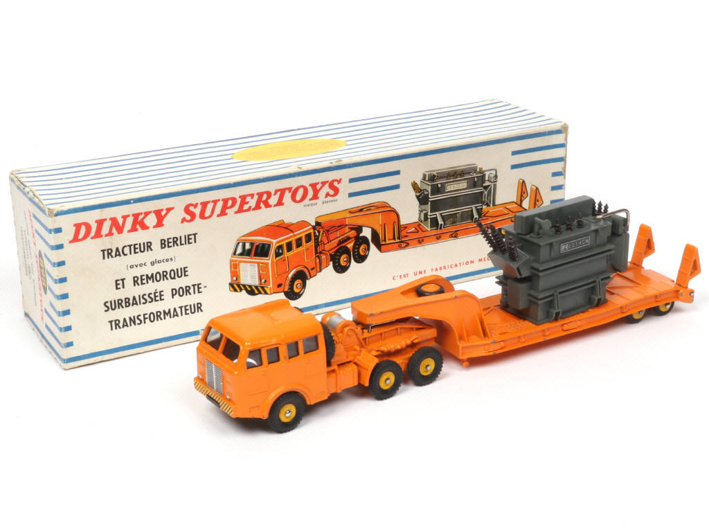 DINKY TOYS (FRANCE) 898 BERLIET Semi-remorque plateau porte-transformateur (version avec jantes de remorque convexes) orange