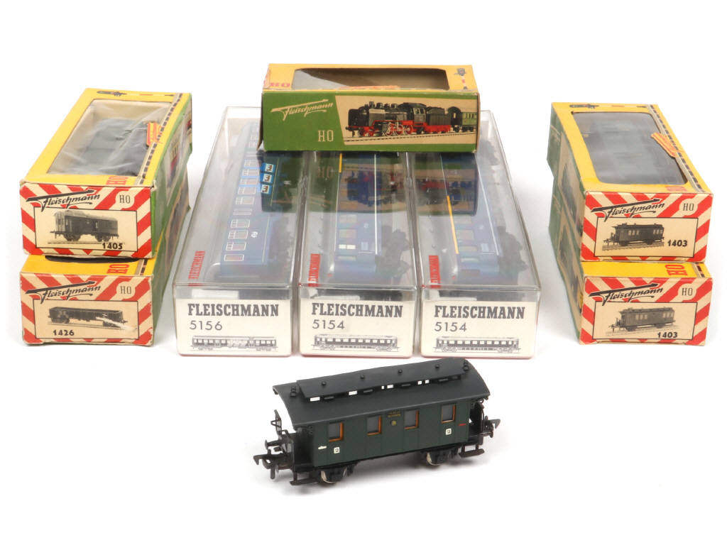 FLEISCHMANN 'HO' (ALLEMAGNE) Ensemble de 8 matériels ferroviaires