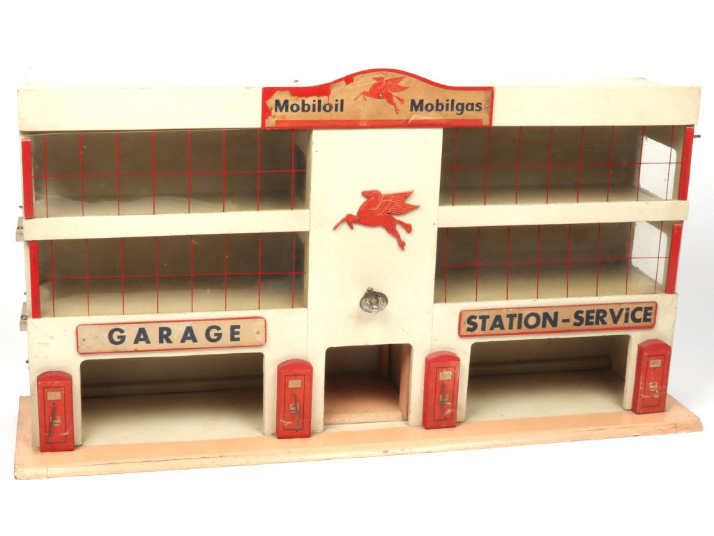 MAJOLU Garage à 2 étages 'MOBILOIL MOBILGAS' crème & rouge