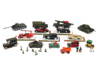 comprend notamment les modèles : COMBAT CAR, DELAHAYE, ASTON MARTIN, MACK & DEDION BOUTON - on y retrouve notamment les marques : SOLIDO, MATCHBOX, J.M.K & STARLUX - quelques manques & parties cassées