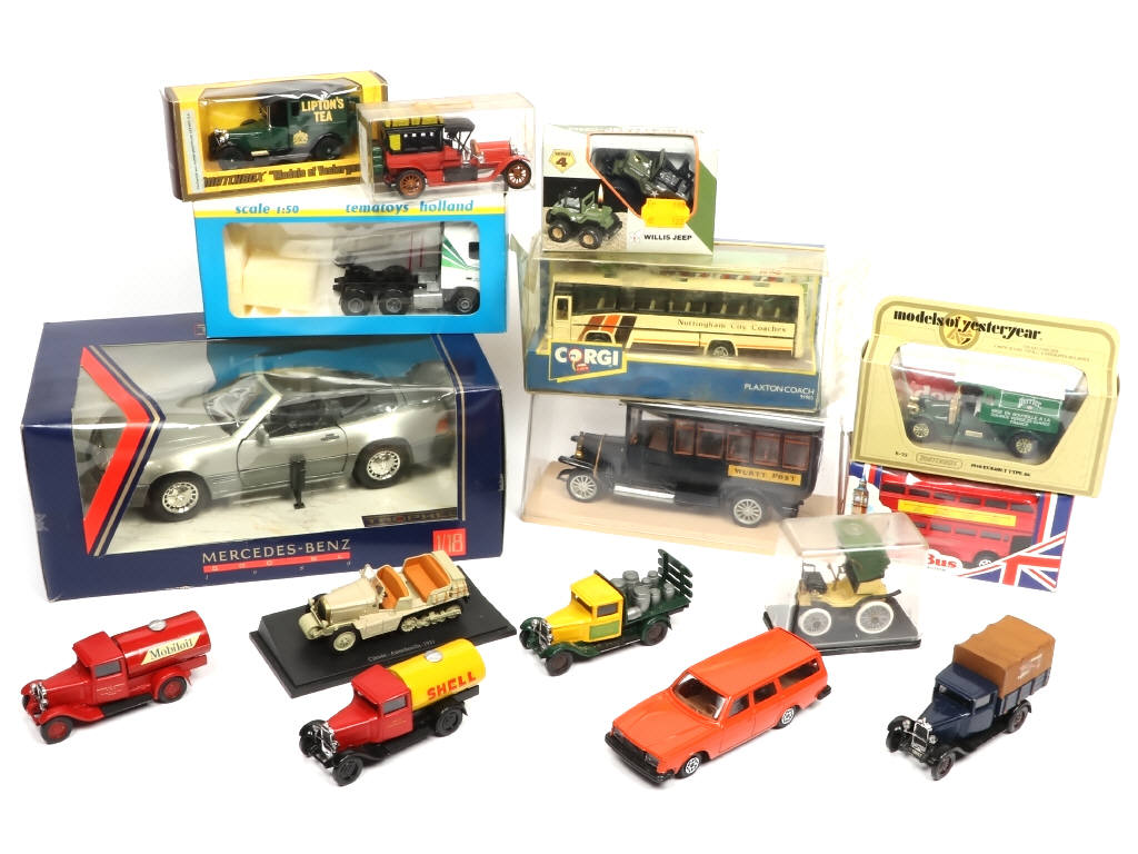 différentes échelles - comprend notamment les marques : CORGI, MATCHBOX & DINKY TOYS - boîtes en états 'b' à 'c' - possibilité de petits manques & parties cassées