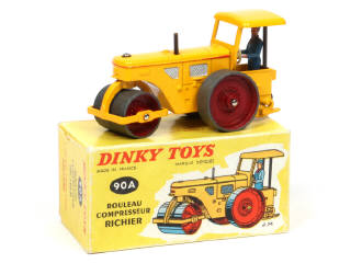 DINKY TOYS (FRANCE) 90A RICHIER Rouleau compresseur jaune & rouge