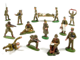 états de 'B' à 'R' - comprend : 2 brancardiers avec blessé sur sa civière, une infirmière, 5 parachutistes, un officier de santé, un transmetteur radio, un poseur de ligne, un officier de transmission & un chirurgien