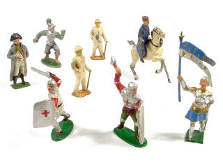 comprend : Jeanne d'Arc, un officier à cheval, Napoléon Bonaparte, 2 personnages coloniaux, 2 croisés & un halebardier d'Henri IV - une figurine de marque QUIRALU