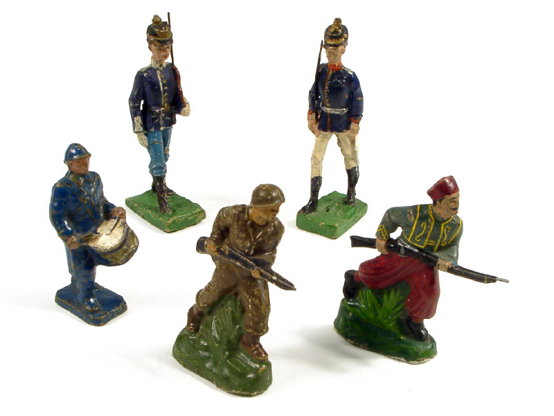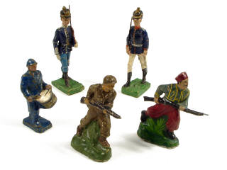 un socle en bois non d'origine - quelques fissures & manques - on y joint 3 soldats en composition