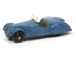 DINKY TOYS (GB) 38A FRAZER NASH BMW bleu foncé, intérieur gris & jantes noires à moyeu