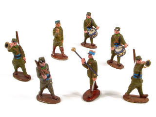 états de 'D' à 'R' - comprend : 2 tambours, 2 clairons, un fantassin avec fusil à l'épaule & 2 tambour-major (manque une canne & une autre non d'origine) - manque une partie de fusil
