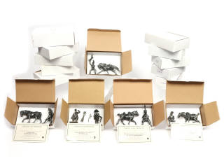série 'LA GRANDE ARMÉE NAPOLÉONIENNE AUSTERLITZ (1805)' - moulés en alliage de métaux (zamac) - la finition a été exécutée à la main - avec certificats d'authencité - comprend notamment les modèles : Porte-drapeau du 84ème régiment d'infanterie de Ligne & Voltigeur Officier des carabiniers