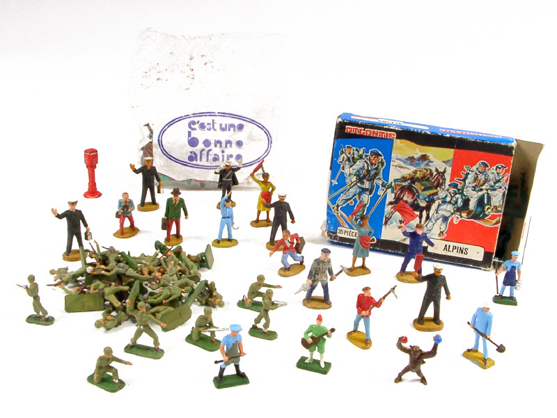 échelle 1/72ème - un sachet plastique contenant 26 figurines jamais ouvert - on y retrouve notamment la marque STARLUX - on y joint une boîte de figurines & d'accessoires sur grappe de marque ATLANTIC