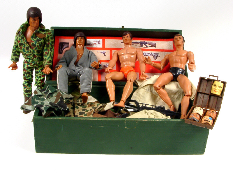 contient des accessoires & des vêtements de BIG JIM & de marque inconnue - on y joint 3 personnages de BIG JIM & un autre de marque inconnue