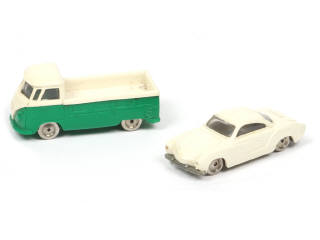 légèrement encrassé - comprend : KARMAN GHIA (manque une extrémité de pare-chocs arrière) & VOLKSWAGEN BULLI PICK-UP (gouttière de toit avec un petit manque)