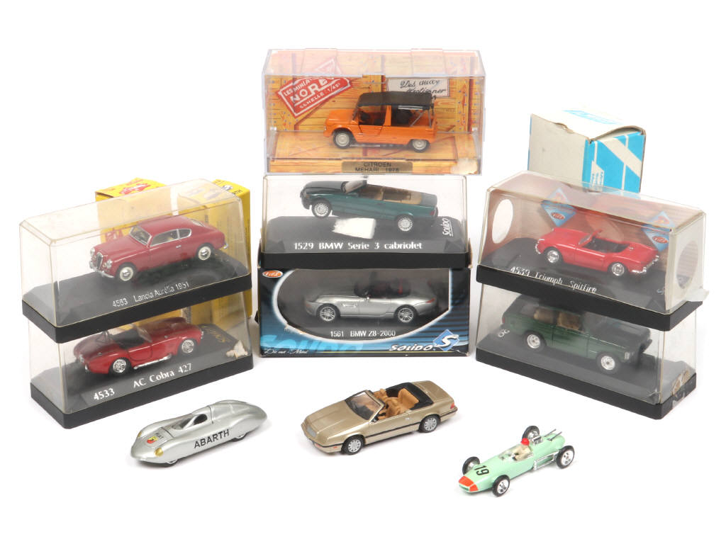 comprend notamment les modèles : CHRYSLER, LANCIA, BMW, TRIUMPH & CITROEN - boites en états 'b' & 'c' - on y retrouve les marques : NOREV, SOLIDO (réédition), ALEZAN