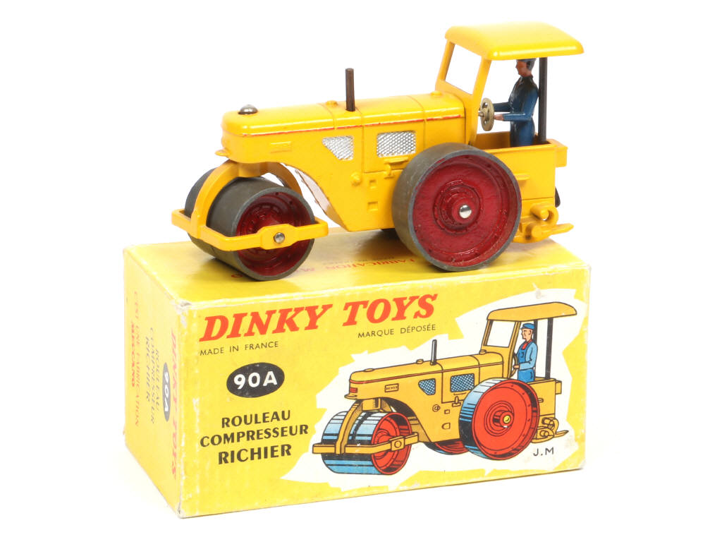 DINKY TOYS (FRANCE) 90A RICHIER Rouleau compresseur jaune & rouge