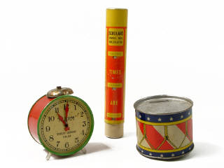J. CHEIN & CO (USA) Tirelire en forme de tambour - Drum money bank bleu, blanc, rouge & jaune