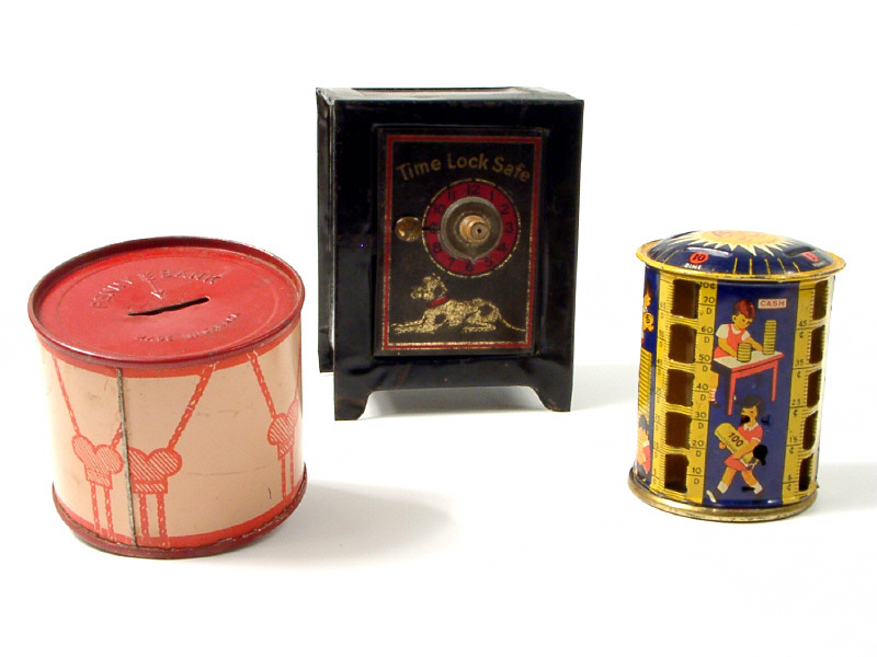 hauteur 14 cm - en tôle - avec molette de combinaisons - parties tordues & enfoncements - partiellement restauré - 14 cm high - tinplate - with conbination knob - dints & bent parts - partially restored