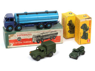 comprend les références : 504 & 641 - pneus séchés - boites en états 'c' & 'd' - on y joint une boite vide de la référence 643 en état 'c' & un camion AUSTIN citerne à eau de la marque MATCHBOX en état 'b'