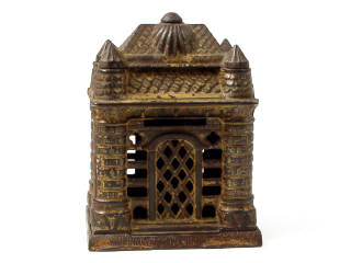 hauteur 15,5 cm - en fonte - modèle s'ouvrant en plusieurs parties grâce à une tige métallique située sous le socle - 15.5 cm tall - cast iron - opens up into several parts held together by a metal strip underneath the model