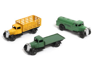 comprend les versions : maraîcher (nombreuses retouches), citerne 'PETROL' & plateau (axes de roues modifiés, partie verte en état 'C') - châssis, calandres & ailes repeints
