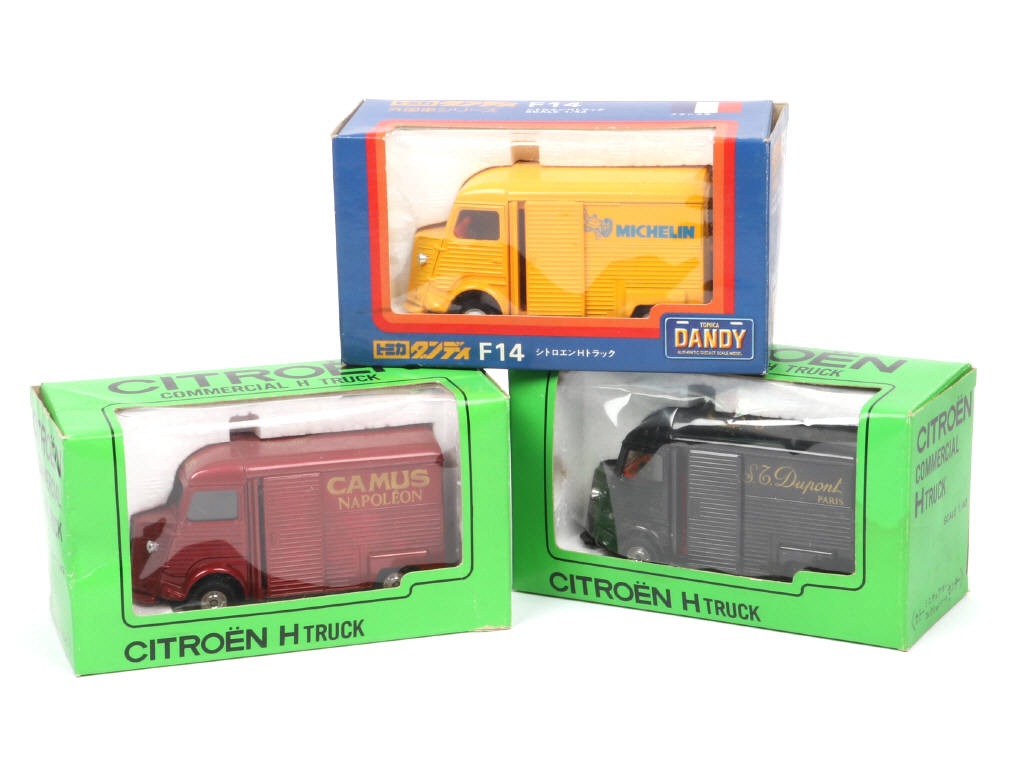 comprend les publicités : 'CAMUS NAPOLEON' & 'DUPONT' - on y joint un même modèle 'MICHELIN' de la marque TOMICA DANDY - 2 blisters en partie décollés