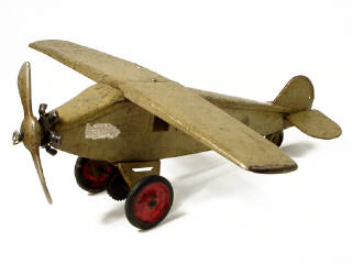 envergure 60,5 cm - en tôle - avec système d'entraînement de l'hélice - quelques manques - semble être une copie du célèbre Spirit of Saint-Louis de Charles Lindbergh