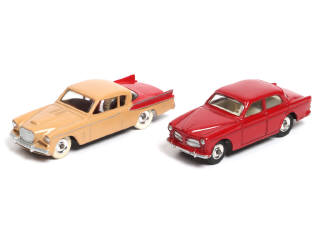 comprend : STUDEBAKER GOLDEN HAWK (état 'A', quelques micro éclats par endroits) & VOLVO 122 S (état 'A-', une retouche sur la malle arrière, montants de toit légèrement déformés)