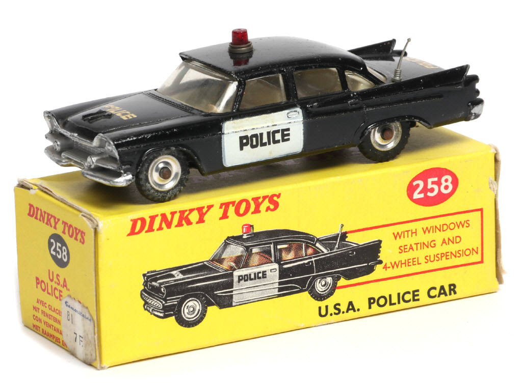 DINKY TOYS (GB) 258 DODGE ROYAL Sedan 'USA POLICE CAR' noir & blanc