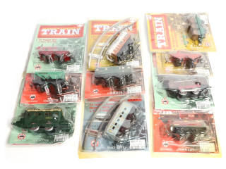 collection (LA GRANDE AVENTURE DU TRAIN) - comprend notamment les modèles : Le wagon à 3 tonneaux, Le wagon-grue de secours & La locomotive vapeur type SNCF - blisters non ouverts