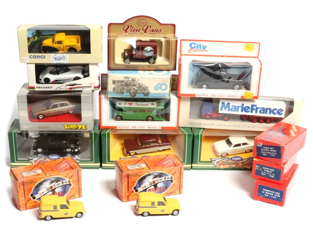 comprend notamment les marques : CORGI, NOREV, VEREM & SOLIDO - on y retrouve notamment les modèles : FORD ZODIAC, JAGUAR MARK II & LOTUS CORTINA - boîtes en états 'b' à 'd'