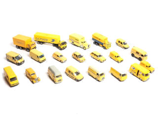 comprend notamment les marques : NOREV, ELIGOR, SOLIDO & SIKU - on y retrouve notamment les modèles : PEUGEOT J7, RENAULT ESTAFETTE & RENAULT 12 BREAK - carrosseries légèrement encrassées - possibilité de petits manques & parties cassées