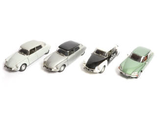 comprend les modèles : CITROËN DS 23 PALLAS (manque l'antenne), CITROËN DS 19 (1963 POLICE), & 2 CITROËN DS 19 (1963) - possibilité de petits manques & parties cassées