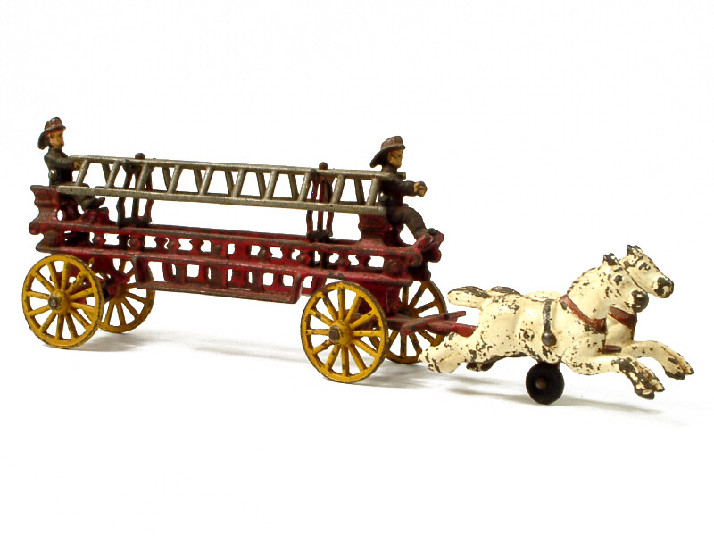 longueur 38 cm - en fonte - avec attelage de 2 chevaux & 2 pompiers - 2 échelles amovibles - 38 cm long - cast iron - 2 horses & 2 firemen - 2 detachable ladders