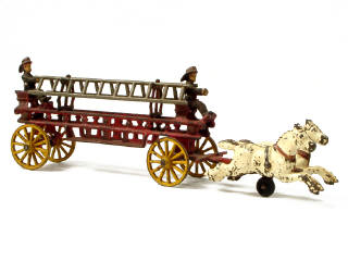 HUBLEY (USA) Grande échelle de pompiers hippomobile rouge & blanc cassé