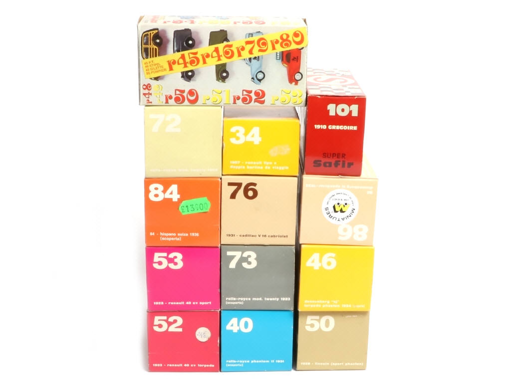 comprend les marques : RIO, SAFIR & BRUMM - on y retrouve notamment les références : 40,50,52,76,34,72,& 50 - possibilité de petits manques & parties cassées - boîtes en états 'b' à 'c'