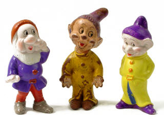 états de 'B' à 'E' - en céramique - comprend 2 SIMPLET (dont un en latex) & ATCHOUM - tiré du film de Walt Disney 'BLANCHE-NEIGE & LES 7 NAINS' - conditions 'B' to 'E' - ceramic - 2 Dopeys (one made in latex) & a Sneezy - from the Walt Disney film 'Snow White & the 7 Dwarfs'