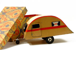 C.I.J. (FRANCE) Caravane en tôle peinte marron clair & rouge