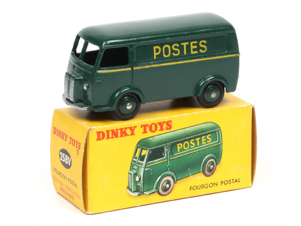 DINKY TOYS (FRANCE) 25BV PEUGEOT D3A 'POSTES' (première version avec inscriptions au tampon) vert foncé