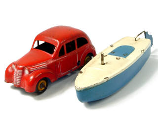 longueur 12,5 cm - moteur à clef (à revoir) - petites traces d'humidité sur l'un des côtés de la carrosserie - traces d'oxydation sur le moteur