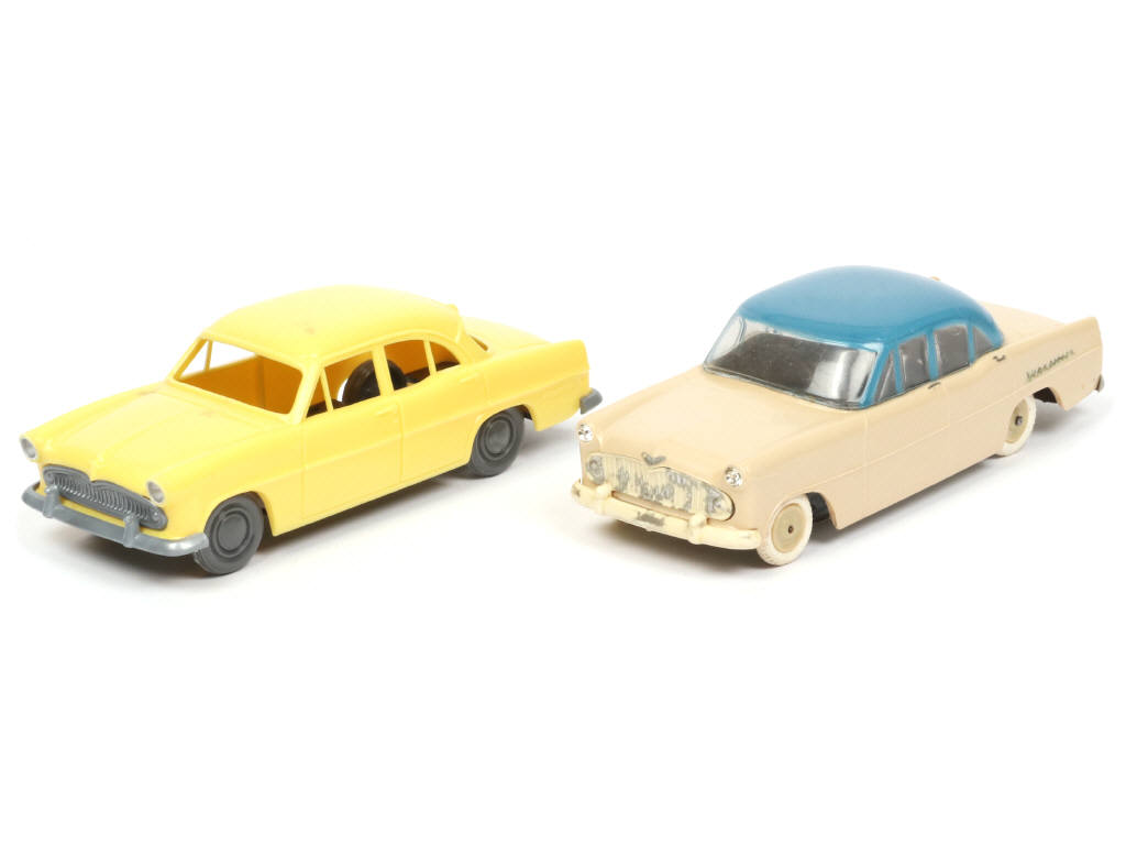 échelle 1/32ème - on y retrouve les marques : MINIALUXE (moteur à friction à revoir, frottements sur le plancher, peinture des pare-chocs & de la calandre altérée) & B.S (petites parties fondues sur le capot-moteur & le toit)