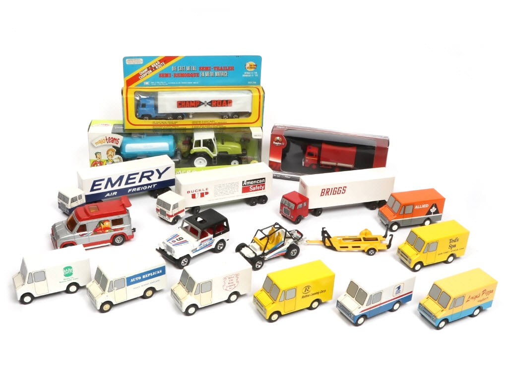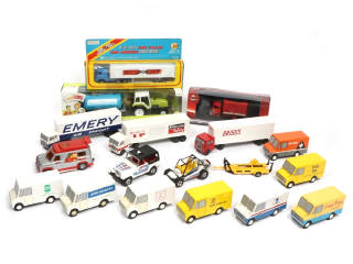 différentes échelles - comprend les marques : MAJORETTE, SOLIDO, RALSTOY & CHAMPION DE LA ROUTE - boîtes en états 'b' à 'c' - possibilité de petits manques & parties cassées