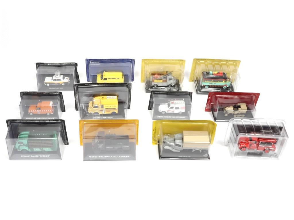 comprend notamment les modèles : CITROËN ACADIANE "SOS DEPANNAGE", RENAULT 4F6 "SERVICE AUTOROUTE" & FORD TRANSIT "MICHELIN" - boîtes en états 'b' à 'c'