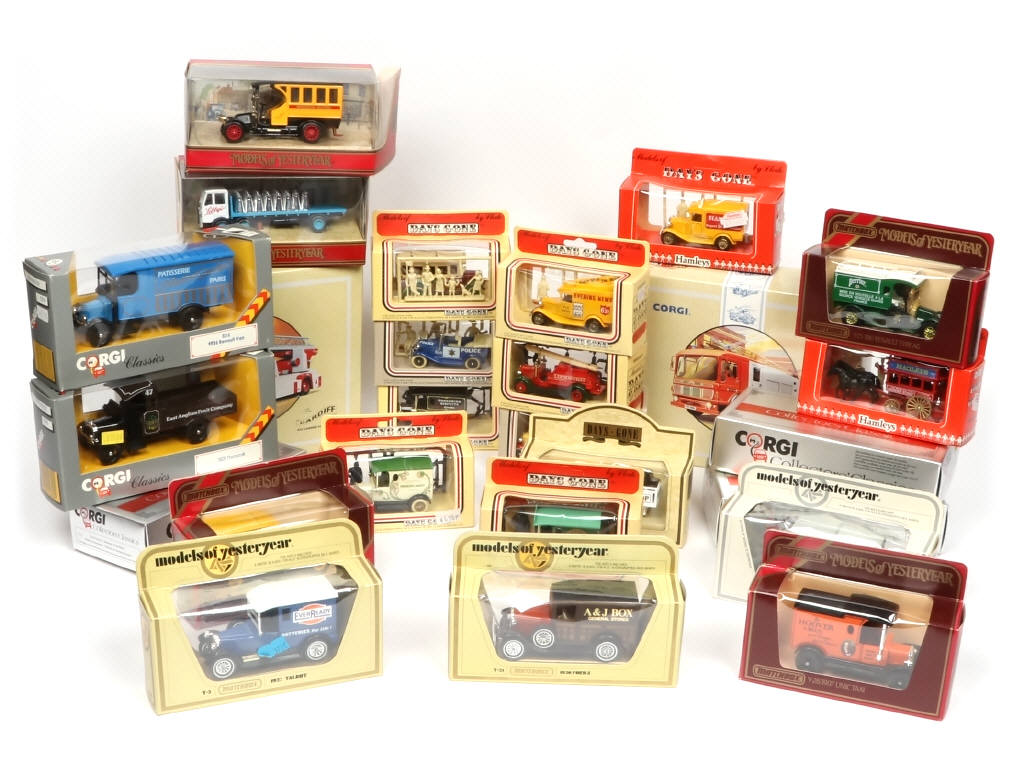comprend les marques : CORGI, MATCHBOX & DAYS GONE - comprend notamment les modèles : RENAULT VAN (1926), AEC LADDER FIRE VEHICULE & TALBOT (1927) - boîtes en états 'b' à 'c'